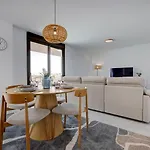 Las Mesas Modern Apartment With Pool In Estepona includes a balcony and a fully equipped kitchen with air conditioning for utmost comfort.